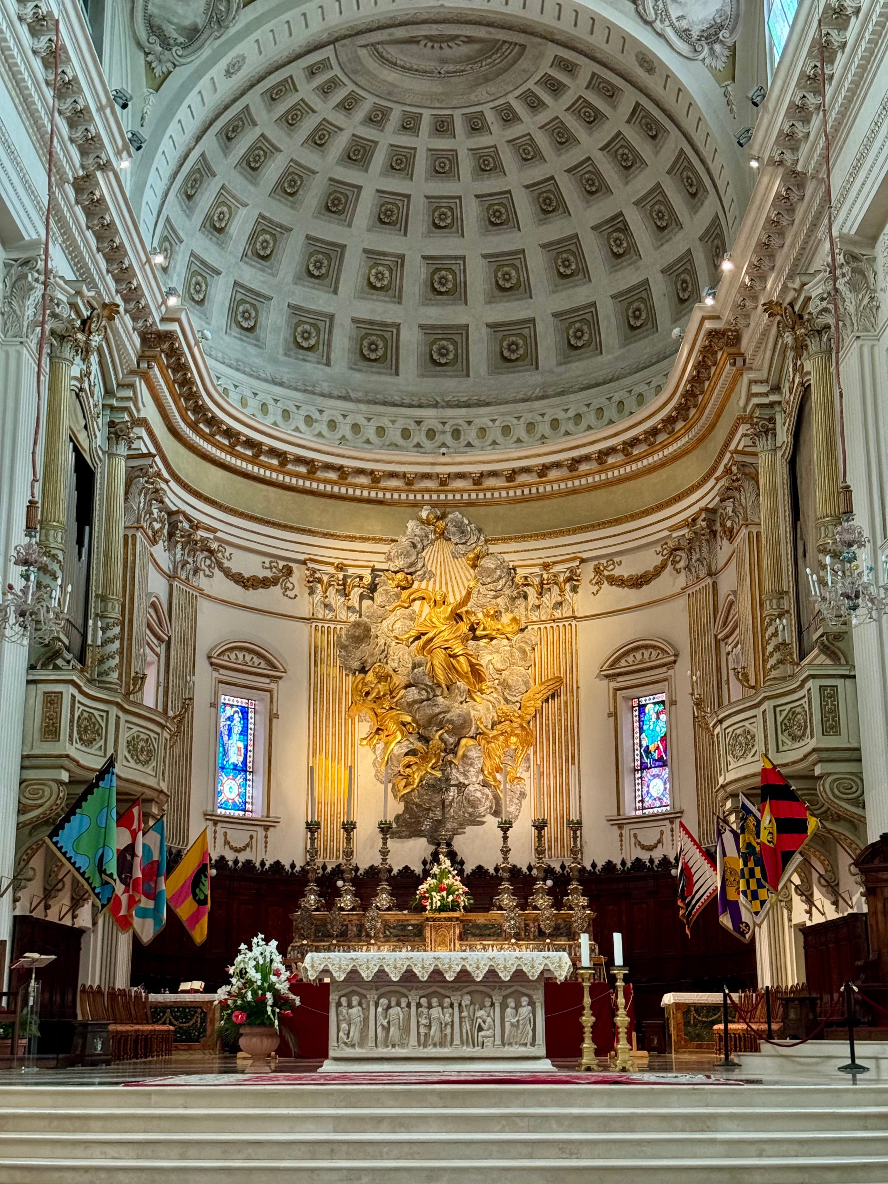 The sacristies contain frescoes by Melozzo da Forlì and Luca Signorelli. The piazza outside, designed by Carlo Maderno, has a grandeur that feels out of scale with the small town around it, which is, of course, the point.