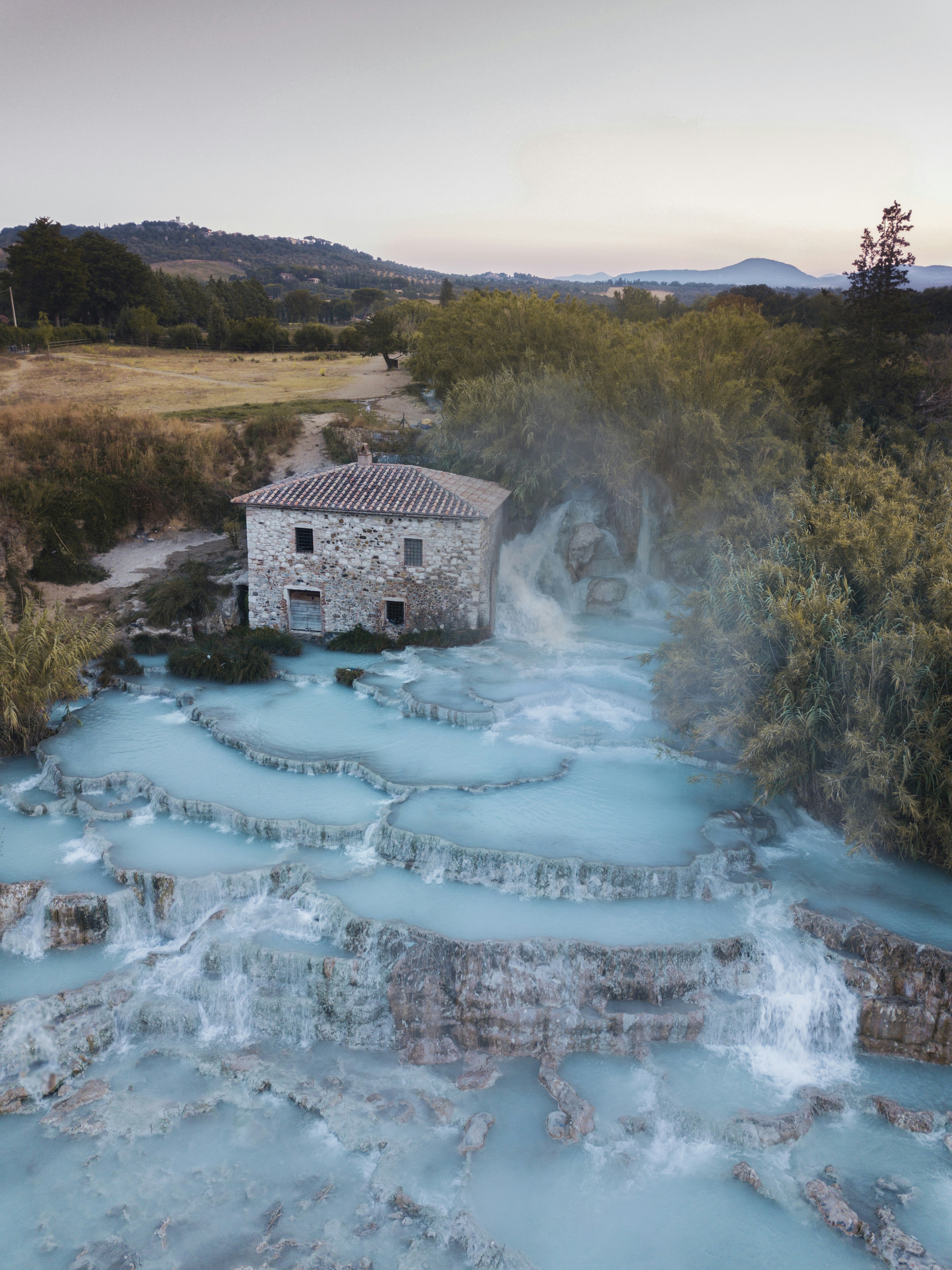 The Terme di Saturnia are a famous natural hot spring in Tuscany, renowned for their stunning turquoise pools and therapeutic waters. According to legend, the springs were created by a lightning bolt thrown by the god Jupiter during a battle. Today, they attract visitors from all over the world who come to relax in the warm, sulfur-rich waters, which are believed to have healing properties. The most iconic spot is the Cascate del Mulino, where the water flows through a series of beautiful stone basins shaped by centuries of natural erosion.