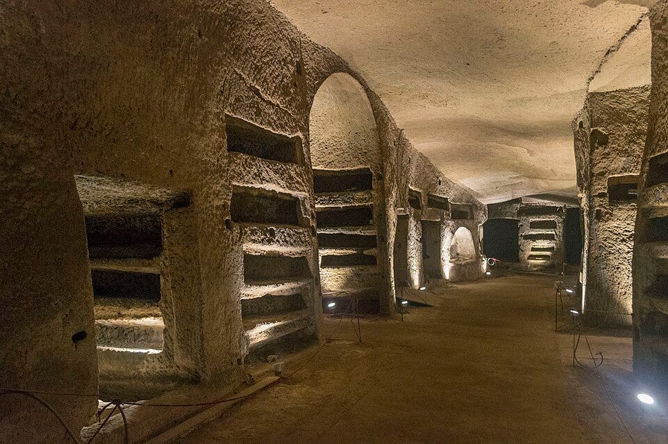 If you’re ever in Naples, you should visit the Catacombs of San Gennaro. (San Gennaro being the patron saint of the city.)